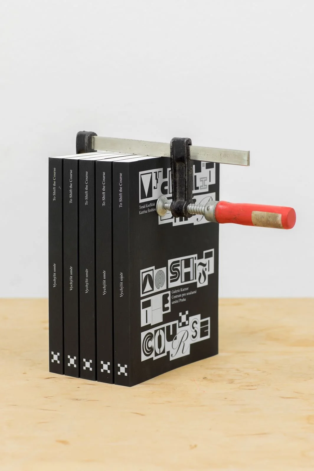Na více než dvou stech stranách přináší česko-anglický výstavní katalog Vychýlit směr rozsáhlé eseje z per historika umění a kurátora Tomáše Knoflíčka a kurátorky, historičky umění a kritičky Kateřiny Štroblové, dále fotografickou dokumentaci jejich ročního výstavního cyklu a také autorské medailony více než tří desítek tvůrců, kteří se na projektu v roce 2025 umělecky podíleli.